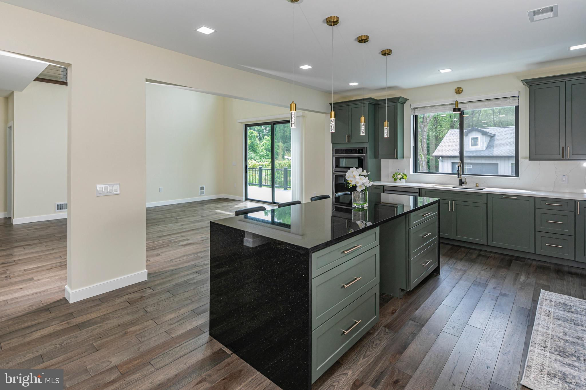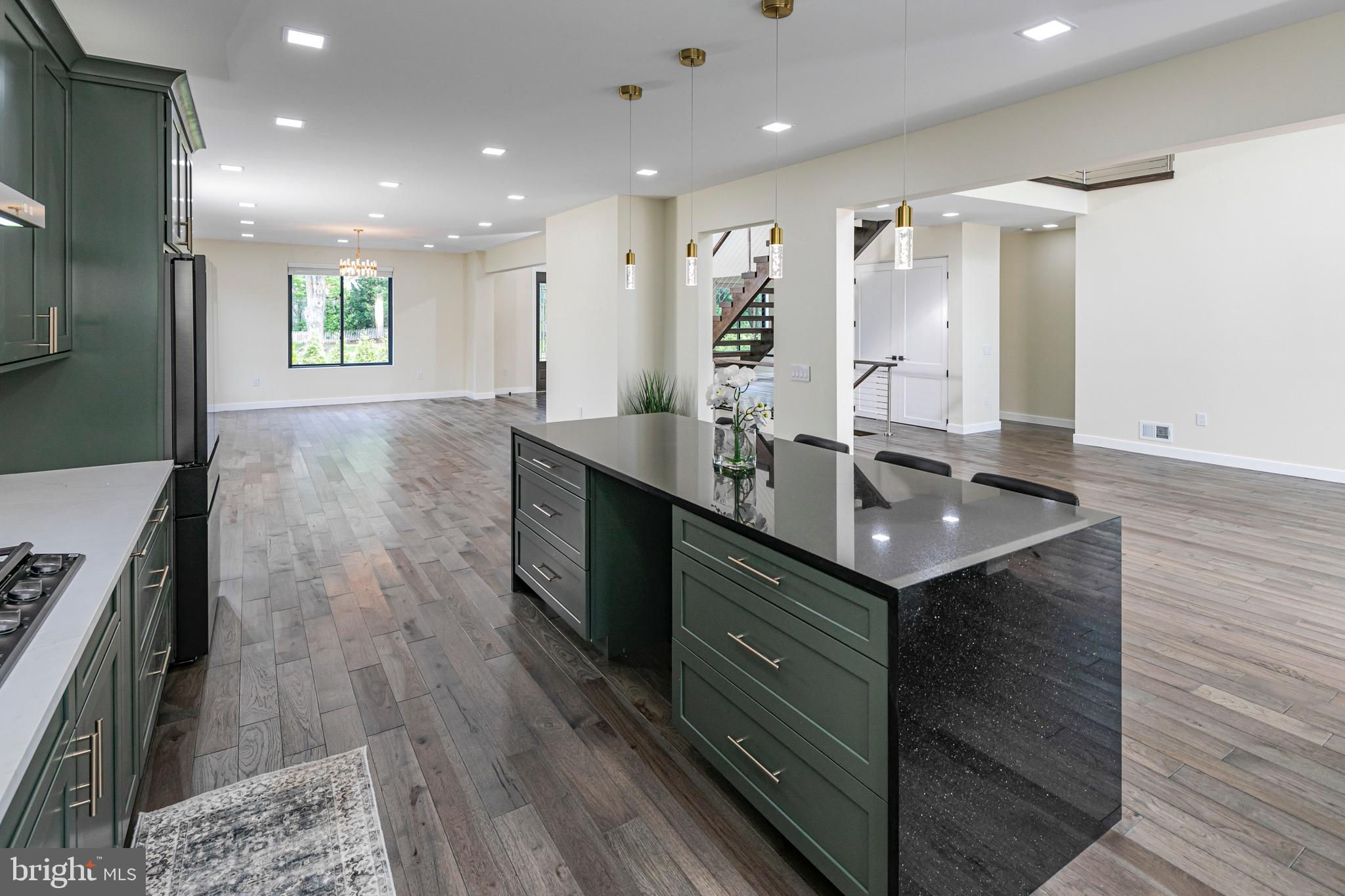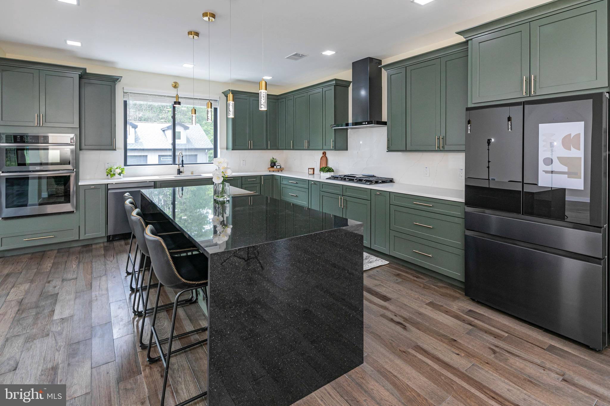 This striking new-construction home sits on over an acre and delivers modern design, top-tier craftsmanship, and true everyday livability. Although officially three bedrooms, the large layout lives more like four, built to impress without losing sight of creature comforts. A wide horseshoe driveway leads to a finished three-car garage with sleek metal doors and polished floors and walls, hinting at the attention to detail found throughout this offering. Step inside the home through a custom hardwood door and you’re welcomed by a dramatic two-story foyer and a floating staircase that anchors the space beautifully. The open-concept floor plan flows seamlessly through the main level, where nine-foot ceilings and rich Brazilian Hickory hardwood floors frame generous living and dining areas. At the heart of it all is a chef’s kitchen with deep green American Woodmark shaker cabinetry, Galaxy black granite waterfall island, double ovens, built-in microwave, Samsung touchscreen refrigerator, and a champagne gold faucet that adds a touch of shine. A flexible main-level en suite offers privacy and versatility and can serve as a wellness studio, home office, or guest quarters. Upstairs, the true primary suite comes complete with a tray ceiling, dual walk-in closets, and a luxurious bathroom featuring a soaking tub, oversized shower, and double vanity. Two additional bedrooms each have their own attached bath, ensuring space and comfort for all. The home’s lower level is fully finished with endless potential for a media room, home gym, or creative studio. A second-floor laundry room includes a new Samsung washer and dryer, utility sink, and plenty of space to keep things organized. Additional highlights include a brand-new septic system, Andersen windows, a Generac gas-powered generator, and a four-zone central air system. Every inch of this home is thoughtfully designed, spacious, flexible, and built with care. Select photos have been virtually staged.