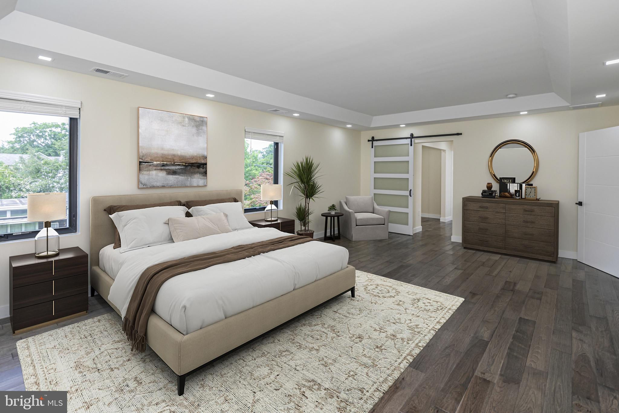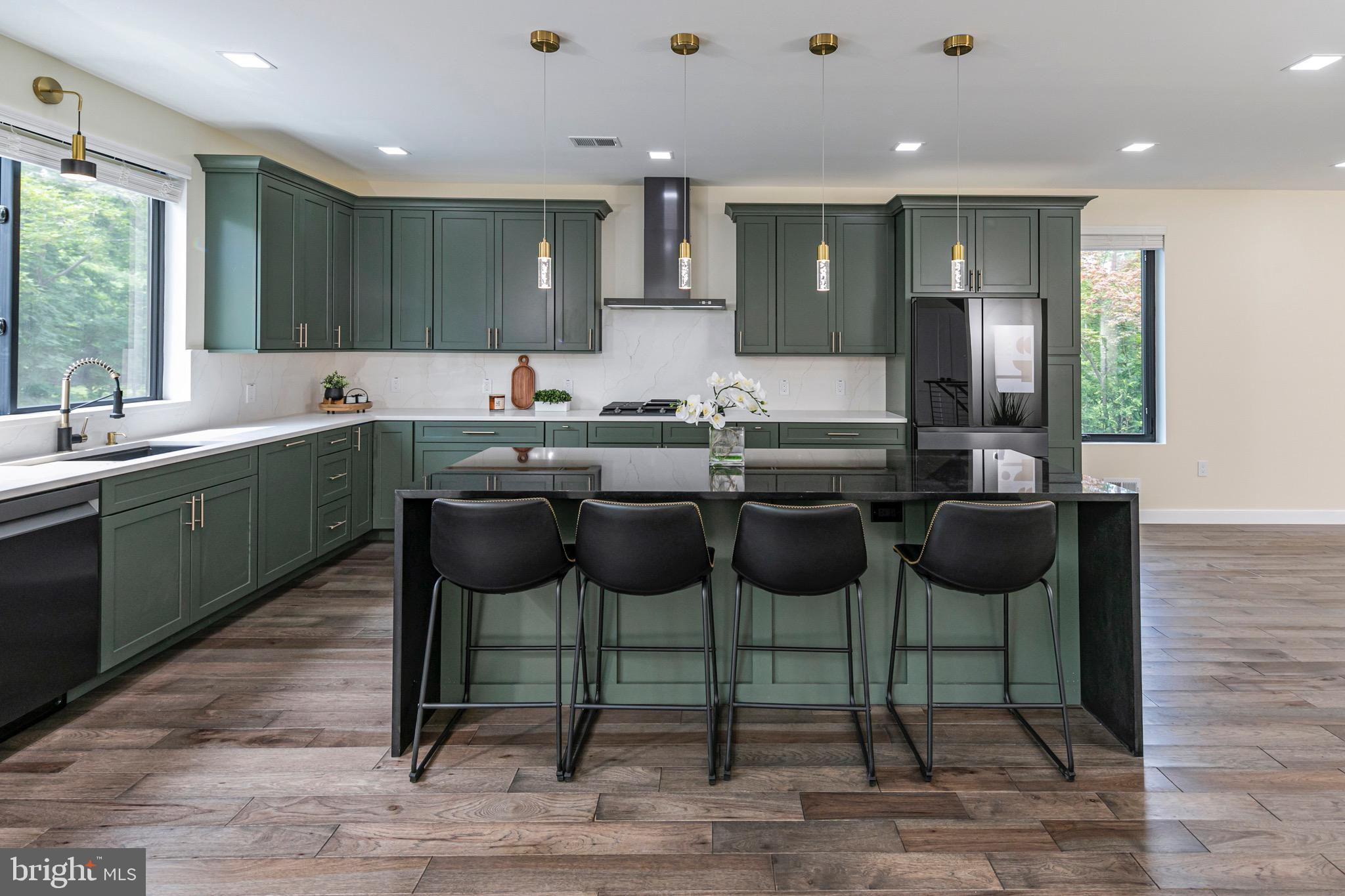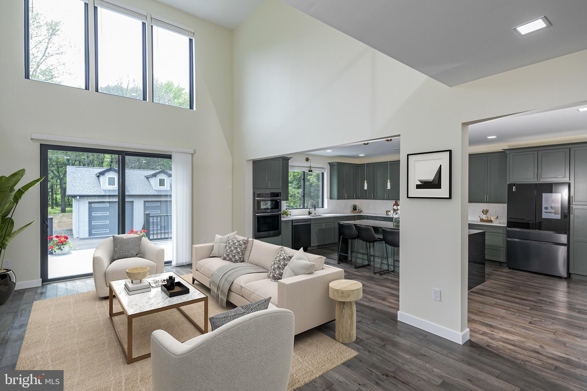 This striking new-construction home sits on over an acre and delivers modern design, top-tier craftsmanship, and true everyday livability. Although officially three bedrooms, the large layout lives more like four, built to impress without losing sight of creature comforts. A wide horseshoe driveway leads to a finished three-car garage with sleek metal doors and polished floors and walls, hinting at the attention to detail found throughout this offering. Step inside the home through a custom hardwood door and you’re welcomed by a dramatic two-story foyer and a floating staircase that anchors the space beautifully. The open-concept floor plan flows seamlessly through the main level, where nine-foot ceilings and rich Brazilian Hickory hardwood floors frame generous living and dining areas. At the heart of it all is a chef’s kitchen with deep green American Woodmark shaker cabinetry, Galaxy black granite waterfall island, double ovens, built-in microwave, Samsung touchscreen refrigerator, and a champagne gold faucet that adds a touch of shine. A flexible main-level en suite offers privacy and versatility and can serve as a wellness studio, home office, or guest quarters. Upstairs, the true primary suite comes complete with a tray ceiling, dual walk-in closets, and a luxurious bathroom featuring a soaking tub, oversized shower, and double vanity. Two additional bedrooms each have their own attached bath, ensuring space and comfort for all. The home’s lower level is fully finished with endless potential for a media room, home gym, or creative studio. A second-floor laundry room includes a new Samsung washer and dryer, utility sink, and plenty of space to keep things organized. Additional highlights include a brand-new septic system, Andersen windows, a Generac gas-powered generator, and a four-zone central air system. Every inch of this home is thoughtfully designed, spacious, flexible, and built with care. Select photos have been virtually staged.