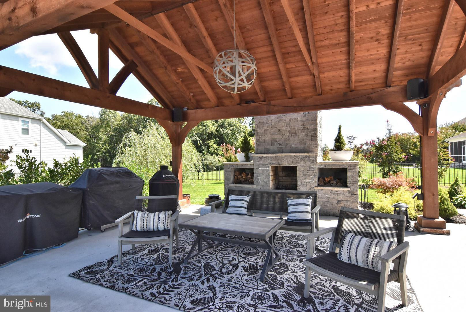 Custom-Built Coastal Beauty in ShowfieldA welcoming front porch invites you into this thoughtfully designed 4-bedroom, 4.5-bath custom home, where quality craftsmanship and an open, airy floor plan define refined coastal living. The first-floor primary suite provides a serene retreat with an elegant en-suite bath featuring a spacious walk-in shower, soaking tub, and dual vanities. Upstairs, an additional primary bedroom offers its own spa-like en-suite with a walk-in shower featuring dual shower heads, while a central loft leads to two more bedrooms connected by a Jack-and-Jill bath—one currently used as a home office, offering flexibility for today’s lifestyle.The gourmet kitchen serves as the heart of the home with its large center island, quartz countertops, stainless Bosch appliances, Thermador dishwasher, and generous walk-in pantry. An adjoining dining area accommodates a long table, making it ideal for gatherings and special occasions. The open living area features a gas fireplace and dramatic folding doors that extend the space seamlessly into the outdoors.Step outside to your private oasis—a beautifully landscaped, fenced, and fully irrigated corner lot with a sparkling saltwater pool and a 16' x 20' pavilion complete with a wood-burning fireplace, creating the perfect setting for relaxation or entertaining. A spacious laundry room with full bath, abundant storage, and extensive counter space is conveniently positioned off the side entrance and adjacent to the 3-car garage.Set within the sought-after community of Showfield along Gills Neck Road, this home enjoys tranquil surroundings near a 16-acre pond and direct access to the Junction & Breakwater Trail. Lewes beaches, Cape Henlopen State Park, and the historic charm of downtown Lewes are just minutes away, offering the ideal blend of privacy, accessibility, and premier coastal living.This exceptional home combines luxury, thoughtful design, and an unbeatable location. Schedule your private showing today before it’s gone!