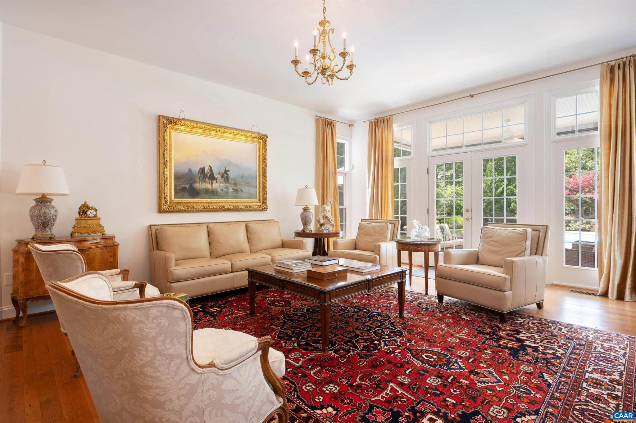 The timeless elegance found in GLENMORE is beautifully reflected in this stunning 4 bedroom Keswick residence set upon a 3/4 acre elevated homesite. Lush manicured grounds surround this meticulously maintained home. Two Primary suites, two fireplaces, three car garage and a modern culinary kitchen & pantry. Exclusive random width distressed oak flooring and staircase by Mountain Lumber found throughout. The resort style salt water pool is simply gorgeous and is surrounded by mature & lofty trees that offer four season privacy. Exquisite covered patio is an entertainer's dream. Irrigation system encircling the home, whole house generator and newly paved driveway. See Documents for a detailed list of features.,Cherry Cabinets,Painted Cabinets,Quartz Counter,Wood Cabinets,Fireplace in Family Room,Fireplace in Master Bedroom